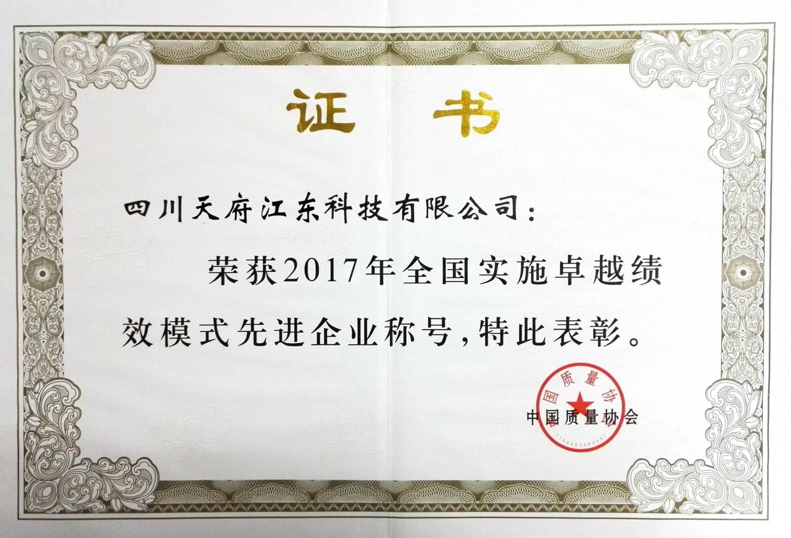 被評為實施全國卓越績效先進企業